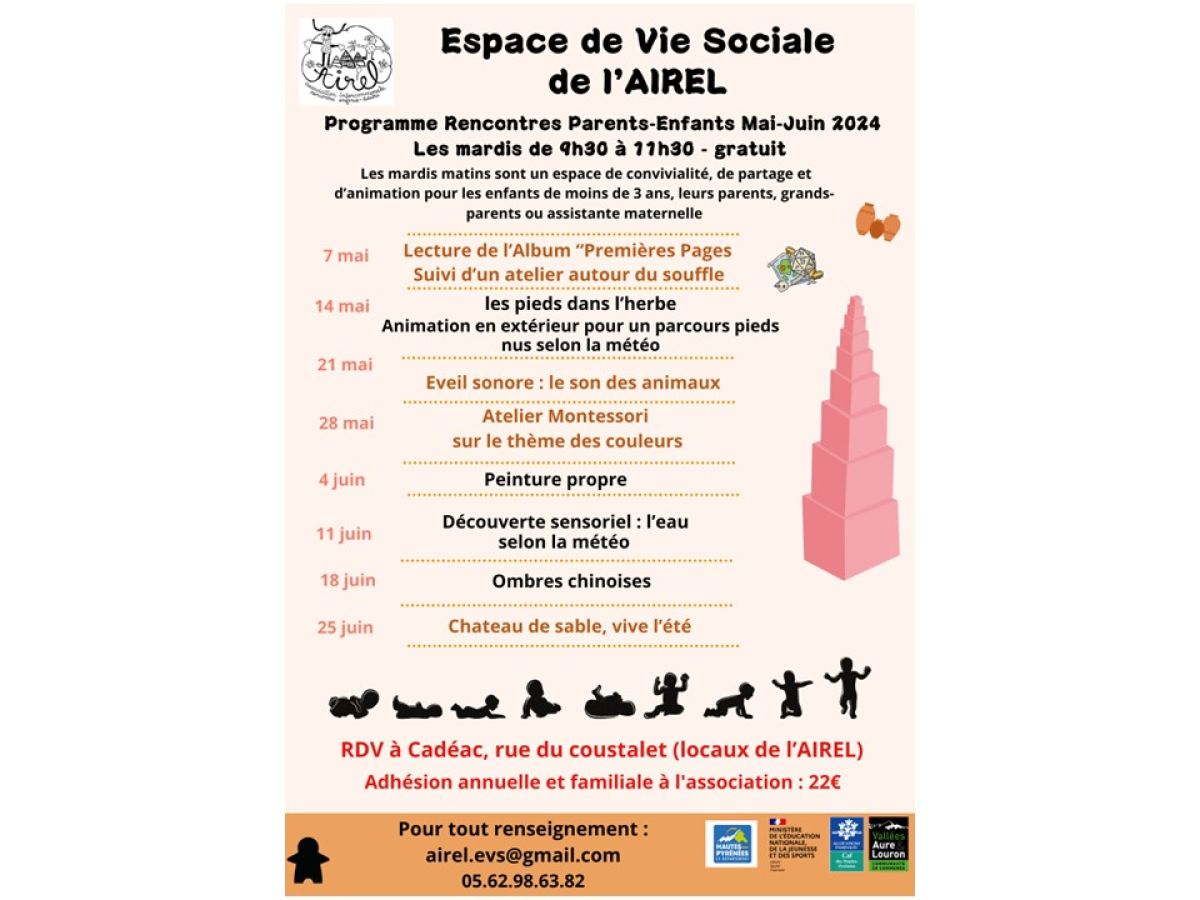 Espace de vie sociale AIREL rencontres parents-enfants : programme Mai-Juin 2024